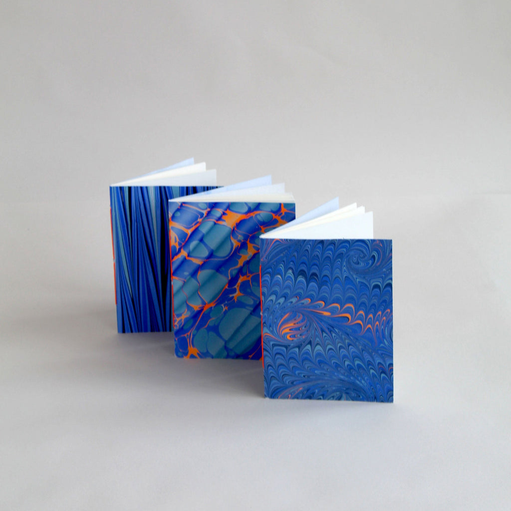 Set of 3 A6 hand-marbled notebooks with 120gsm fountain pen friendly pages. Made in the UK.
