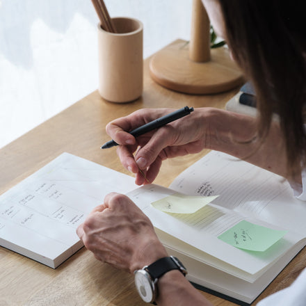 Our Diary layout was designed in conversation with our customers, who told us about what they love (and hate) about the many diaries they had tried before. We wanted to develop the ultimate, user-friendly week-view layout, which would provide structure without being prescriptive or cluttering the page with stuff you don't need.