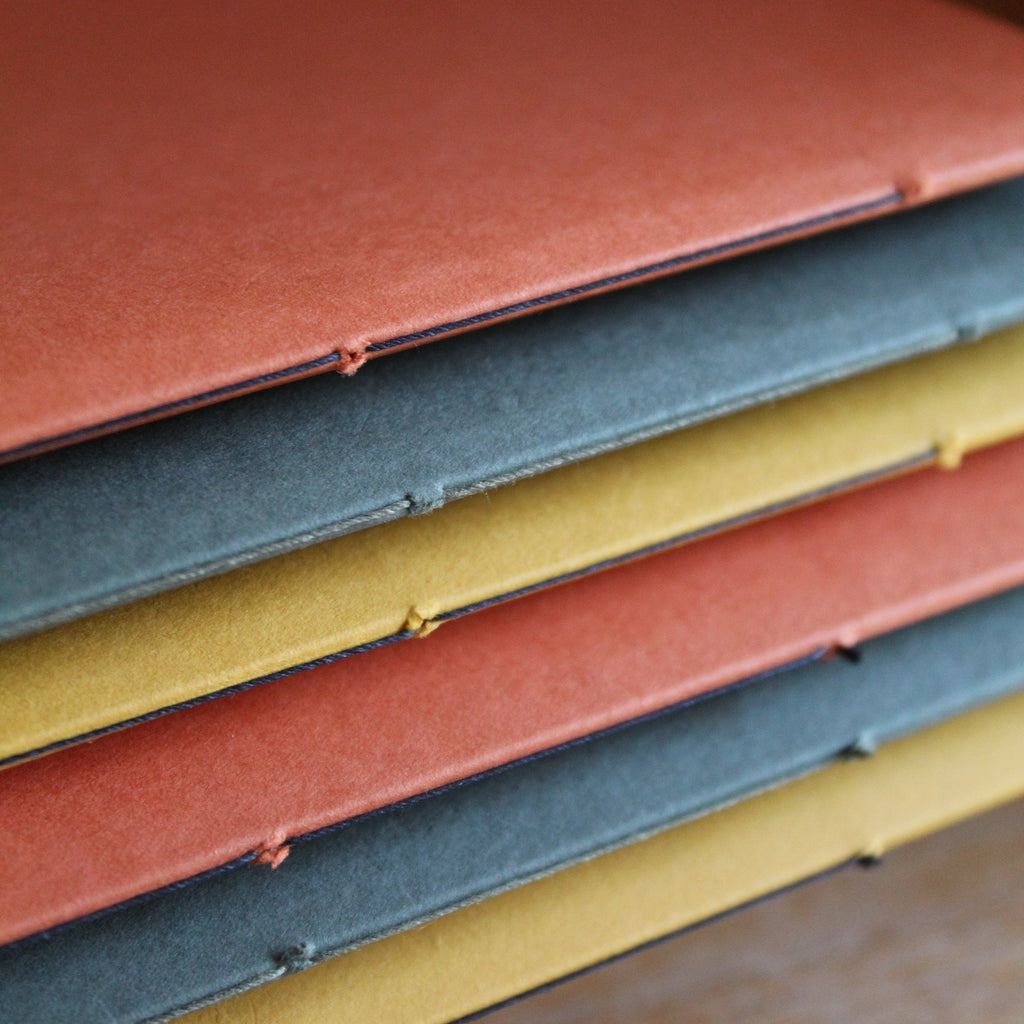 We work with a family-run bindery in Suffolk to thread-sew our Exercise Books — the simplest way to make a slim, layflat book.